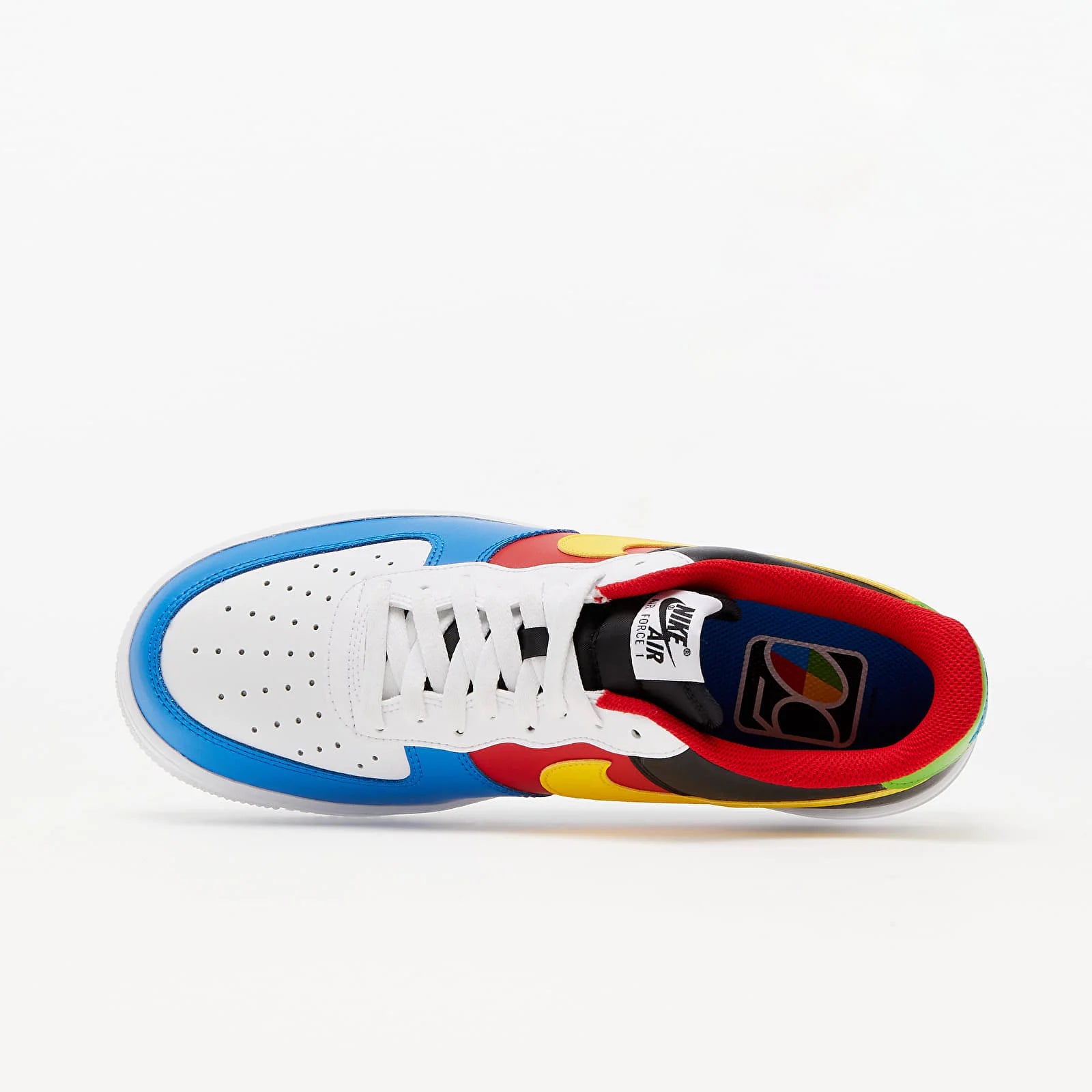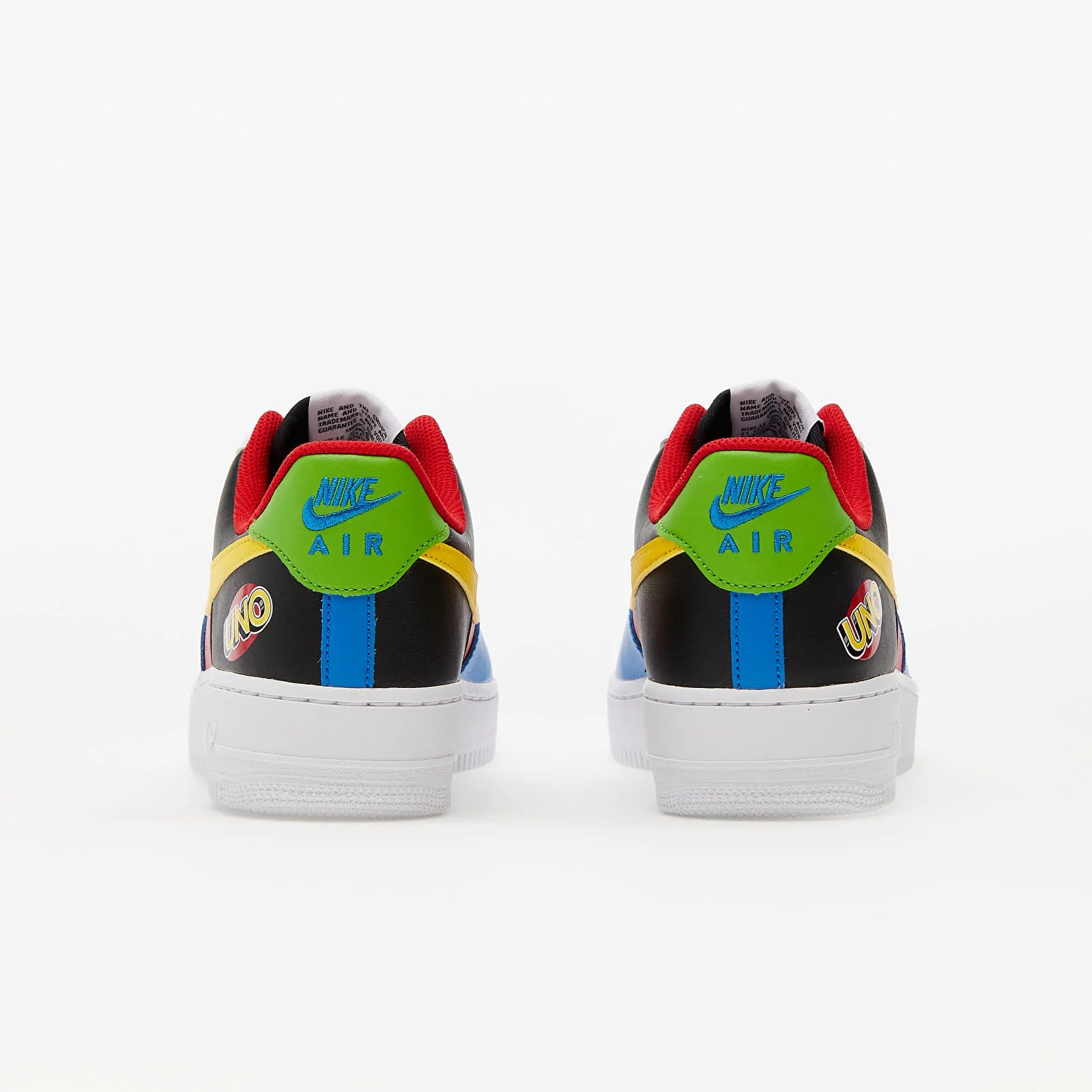 Nike Air Force 1 Low '07 QS UNO presents an upper multicolored to the keys of white on the Toebox and the laces, of red on the quarter panel and the lining, YELLOW on the Swoosh, of blue on the mudguard and Green On the Heel-Tab. The entire silhouette takes up the emblematic color code of the cards.