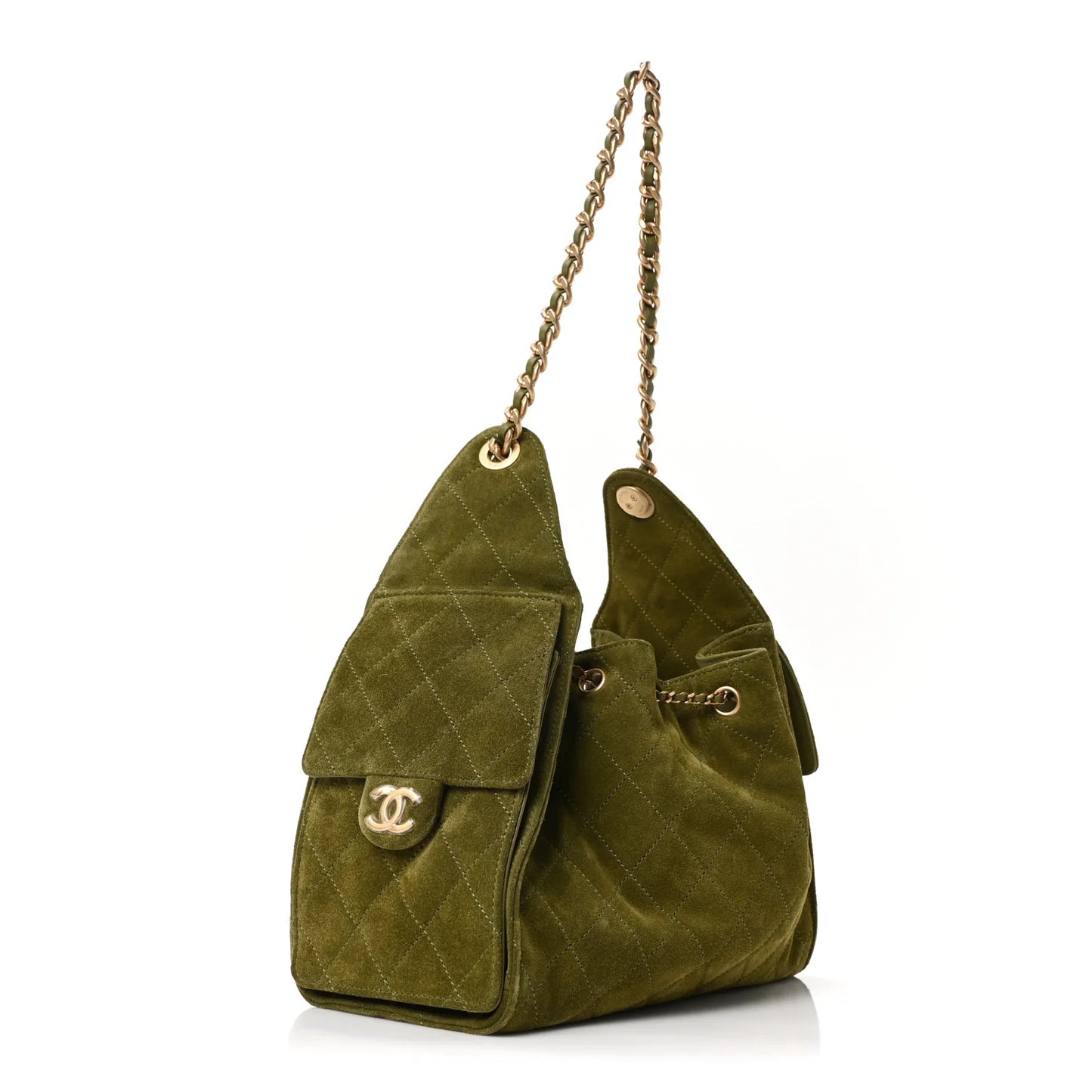 Chanel Small 25 Handbag – Suede Quilted, Khaki, Aged Gold Hardware
