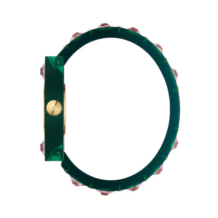 The Gucci Vintage YA143525 Ladies' Watch exudes a charming and timeless design. Featuring a 24mm PVD-plated case, this watch is complemented by a delicate pink dial for a feminine touch. The watch is powered by Swiss quartz movement for accurate timekeeping, while the resin bracelet offers a lightweight and comfortable fit. With water resistance up to 30 meters, this watch is ideal for daily wear. A perfect blend of style and practicality, the Gucci Vintage Watch makes a sophisticated addition to any collection.