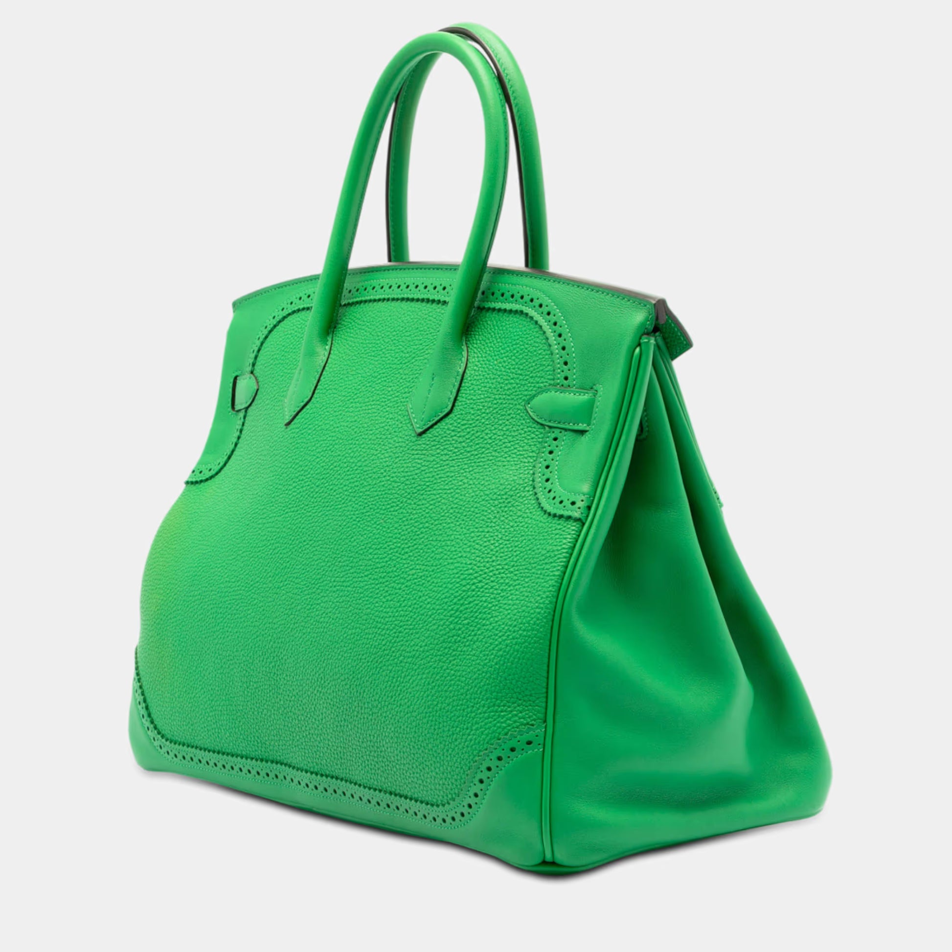Command attention with the Hermès Birkin 35 in Green, crafted from a luxurious combination of Togo and Swift leather. This iconic handbag blends Hermès’ signature structured silhouette with subtle texture contrasts, creating a refined and timeless piece that elevates any collection.