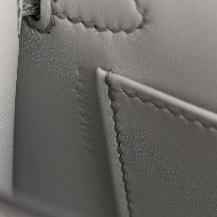 Elevate your collection with the Hermès Mini Kelly Sellier 20 in Argent, crafted from luxurious metallic Chevre Chamkilight goatskin leather. This petite handbag combines sleek metallic shine with the iconic Kelly silhouette, offering both elegance and standout style.