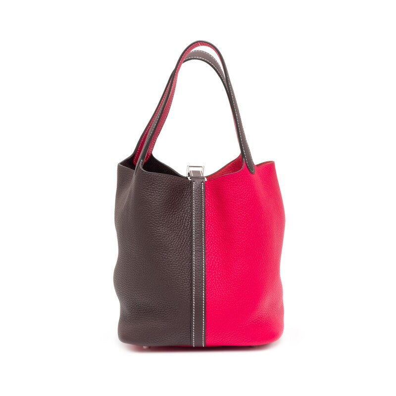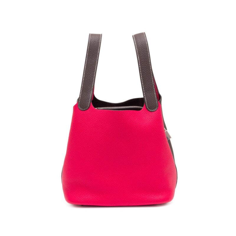 Elevate your everyday style with the Hermès Picotin Lock 18, crafted from luxurious Taurillon Clemence leather in a striking Framboise & Rouge Sellier bi-color. Featuring smooth lines and a minimalist silhouette, this unlined bag embodies effortless elegance while showcasing Hermès’ renowned craftsmanship.