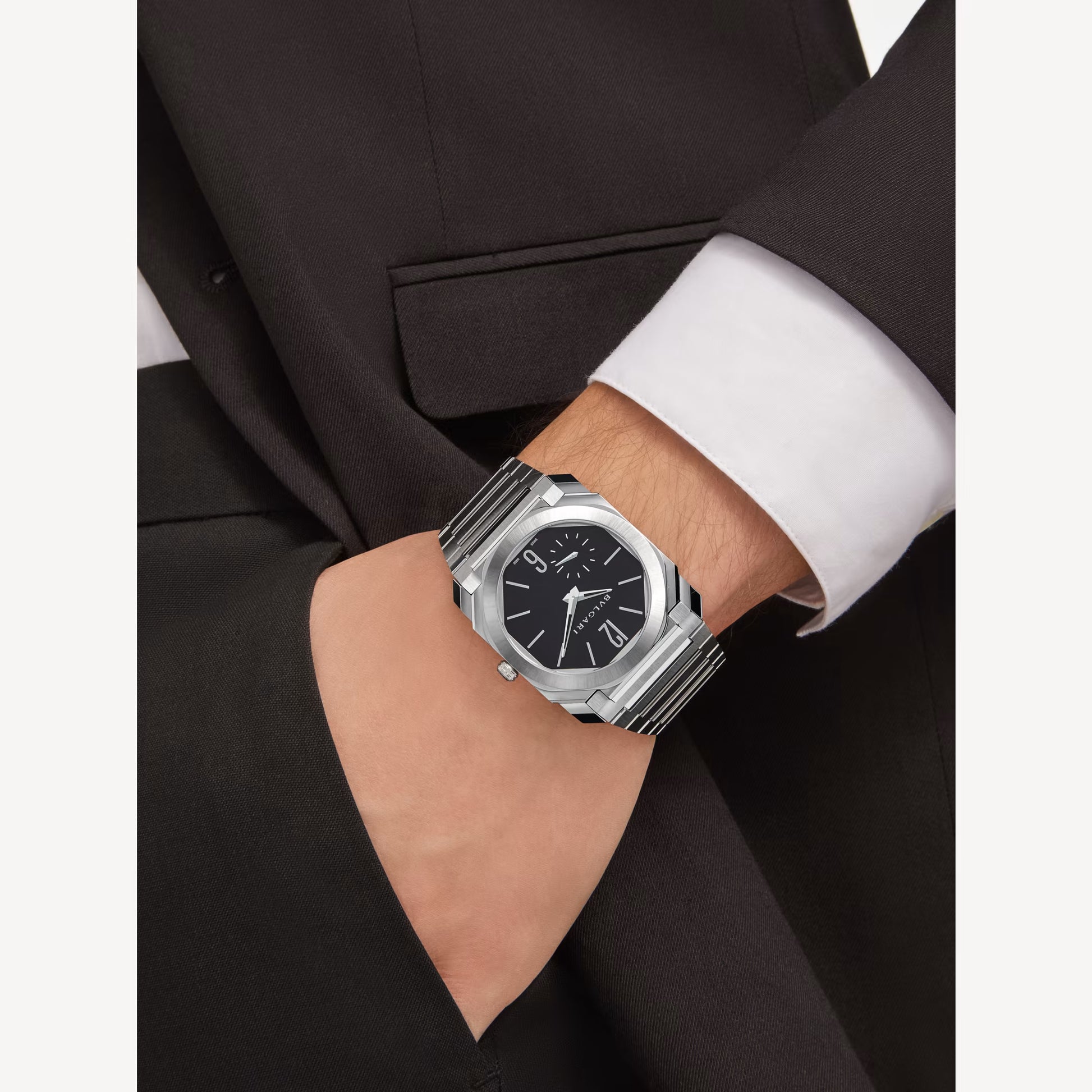 The Bvlgari Octo Finissimo Automatic Ref. 103297 redefines modern watchmaking through a seamless blend of Italian architectural precision and Swiss mechanical mastery. Recognized as a true icon of contemporary horology, it embodies Bvlgari’s visionary craftsmanship and bold minimalism. The ultra-thin 6.40 mm satin-polished stainless steel case and integrated bracelet reflect geometric elegance, while the black matte dial with rhodium indexes enhances the sleek, monochromatic aesthetic. Inside, the in-house BVL 138 caliber — equipped with a platinum microrotor — delivers impeccable performance and a 60-hour power reserve, all within an exceptionally refined structure. More than just a timepiece, the Octo Finissimo is a declaration of innovation, artistry, and timeless sophistication.