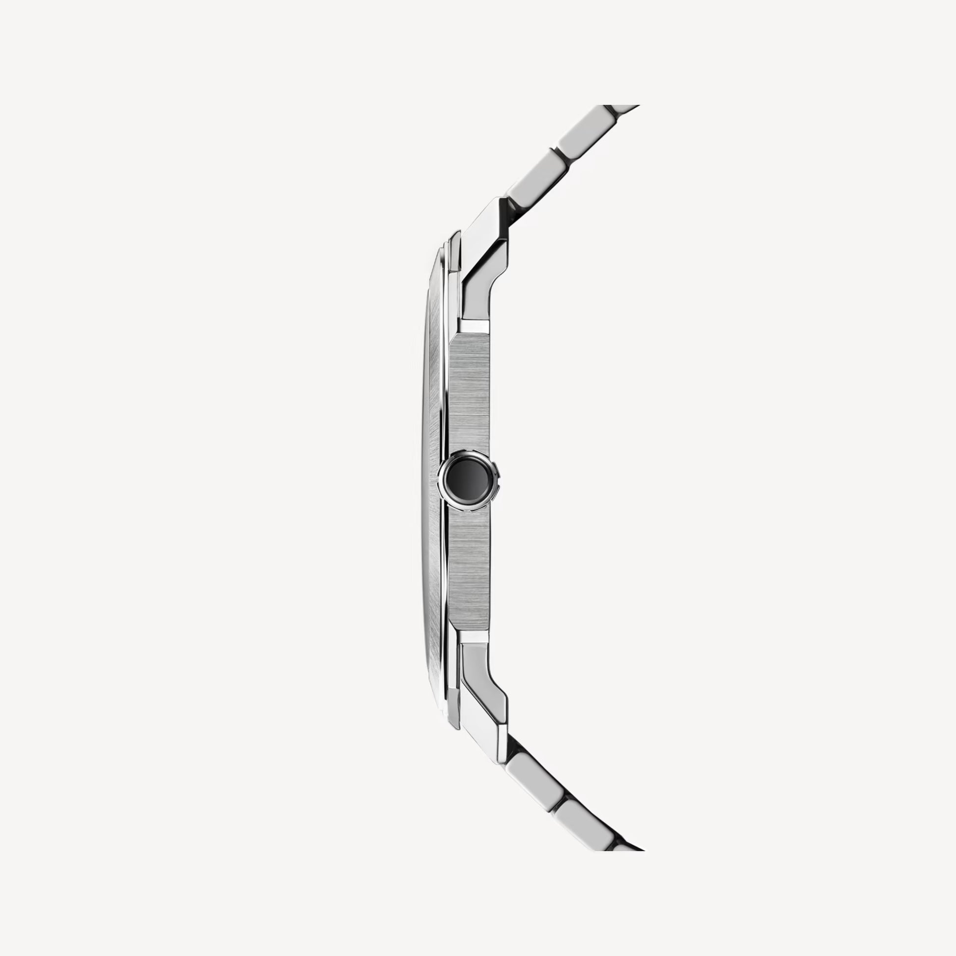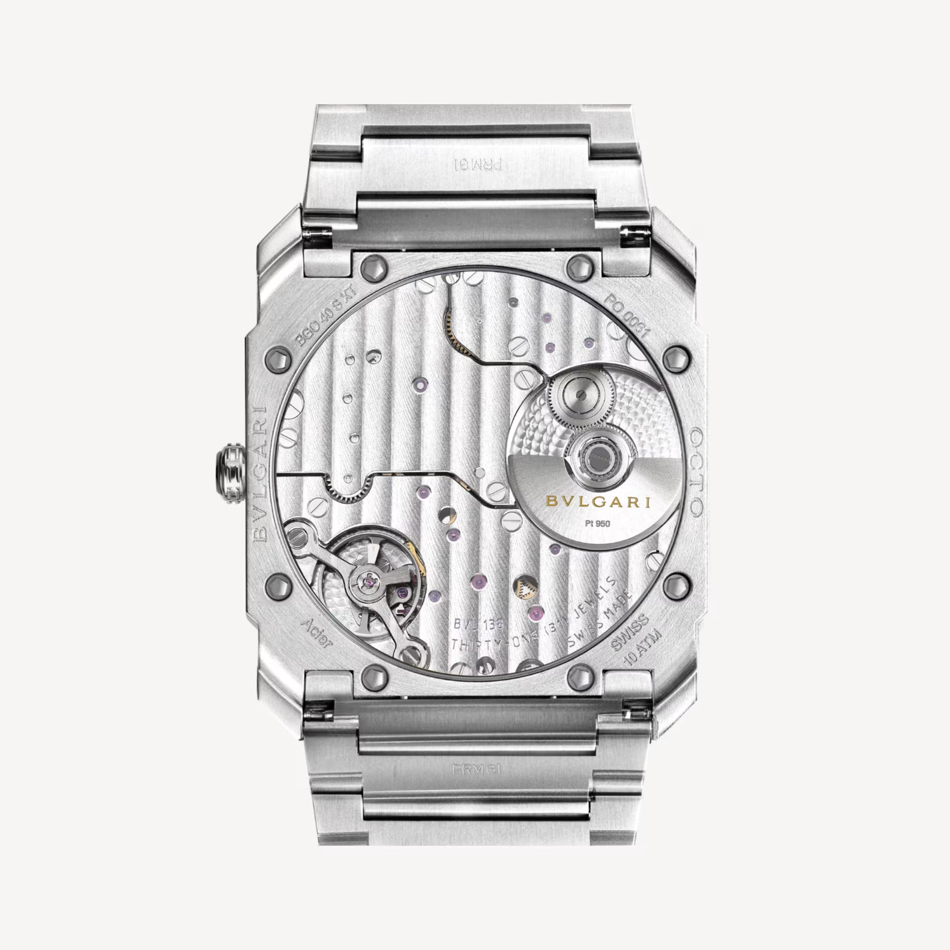 The Bvlgari Octo Finissimo Automatic Ref. 103856 stands as a masterstroke of contemporary haute horlogerie, seamlessly merging Italian artistry with Swiss mechanical precision. Crafted in satin-polished stainless steel, this Limited Edition timepiece captivates with a rare sun-brushed metallic salmon dial, its warm tones strikingly contrasted by rhodium-applied indexes. Beneath its sleek architecture lies the BVL 138 calibre, an ultra-thin mechanical movement just 2.23 mm thick, featuring a platinum micro-rotor and a 60-hour power reserve — a true marvel of engineering excellence. The combination of refined minimalism, architectural design, and exceptional thinness makes this exclusive US & Canada edition a symbol of elegant innovation and timeless modernity.