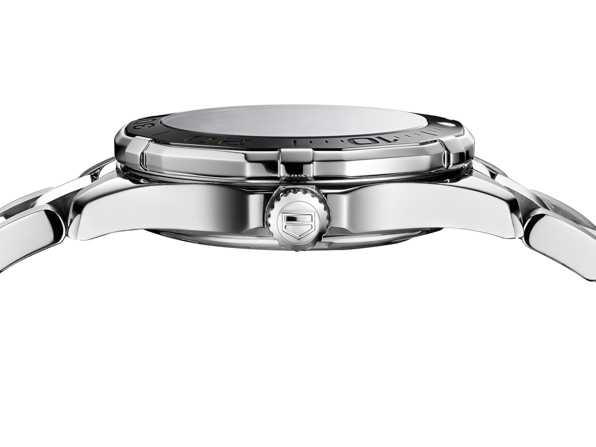 The TAG Heuer Aquaracer Ladies Watch WAY131K.BA0748 is a sophisticated sport-luxury timepiece that blends style with Swiss precision. Crafted with a 35mm stainless steel dodecagon-shaped case and paired with a stainless steel bracelet, it features a striking black mother-of-pearl dial highlighted by silver-tone index markers and luminous hands. . Powered by a reliable quartz movement and offering water resistance up to 300 metres, this Aquaracer combines elegance with the robustness of a true professional diving watch.