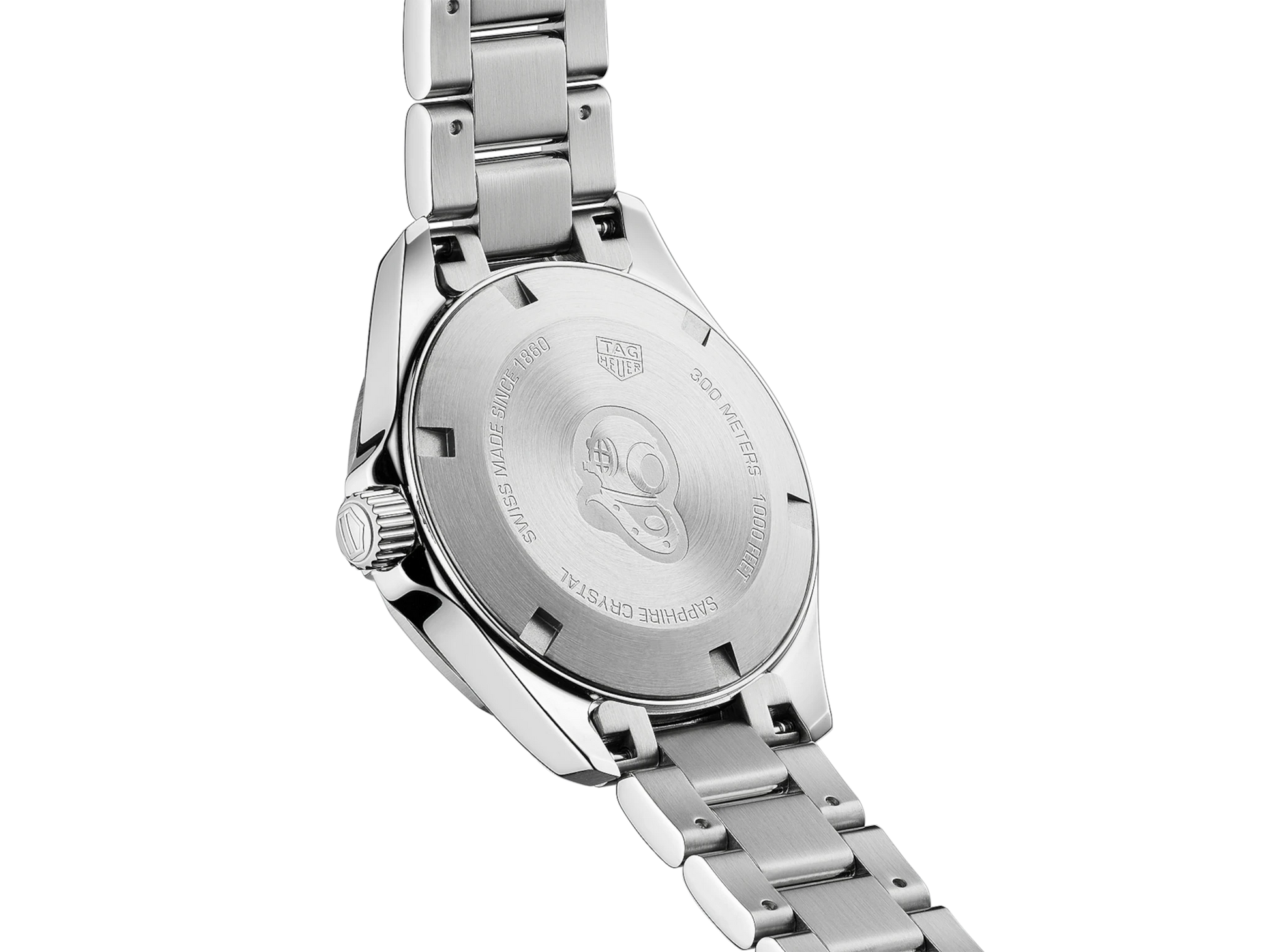 The TAG Heuer Aquaracer Women’s Swiss Quartz Watch WBD1311.BA0740 is a sophisticated blend of elegance and sport-inspired design. Crafted from brushed and polished stainless steel, the 32mm case and bracelet frame a luminous mother-of-pearl dial with silver-tone accents. Equipped with luminous hands, line hour markers, and a date display at 3 o’clock, this timepiece ensures excellent readability. Powered by a reliable Swiss quartz movement and water resistant to 300 metres, the Aquaracer is a perfect everyday companion with refined luxury appeal.