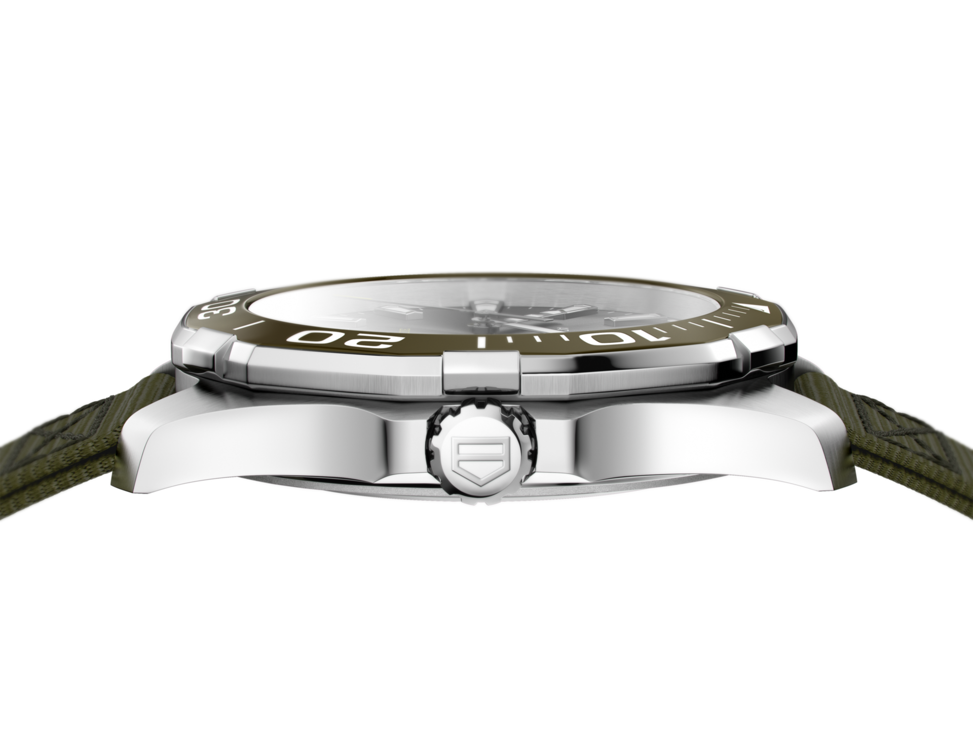 The Tag Heuer Aquaracer Men’s WAY101E.FC8222 Watch is a high-performance dive watch built to handle extreme aquatic conditions while maintaining sleek style. Housed in a 43 mm lightweight titanium case, it features a striking dark green dial with luminous hands and markers, complemented by a date window at 3 o’clock. The black aluminum unidirectional bezel enhances its diving functionality, while the durable dark green nylon strap ensures comfort and security. Powered by a precise Swiss quartz movement and water-resistant to 300 meters, this Aquaracer delivers both reliability and sophistication for every adventure.