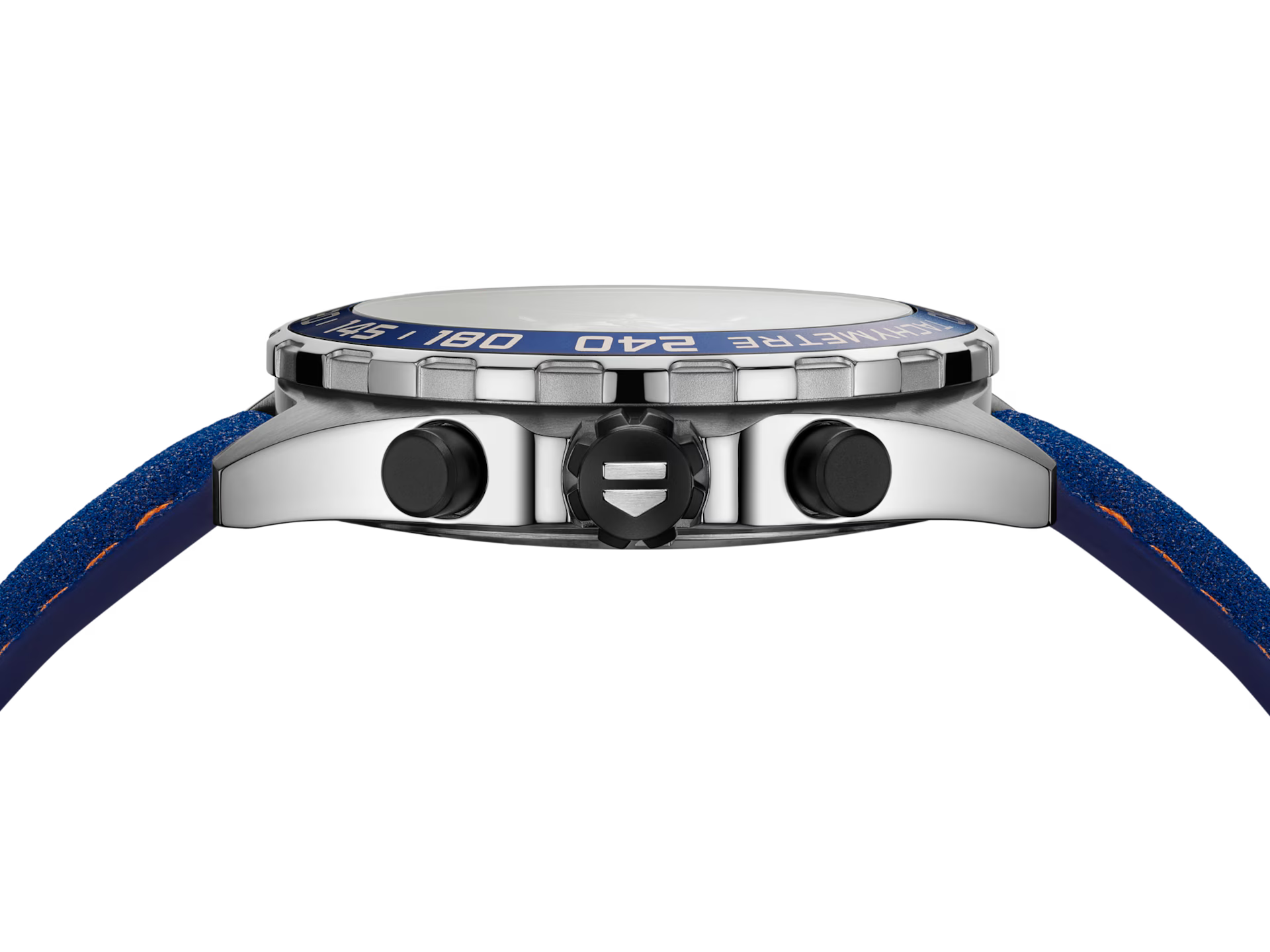 This pre-owned TAG Heuer Formula 1 is CAZ101N.FC8243 a stylish and reliable men’s chronograph, certified and fully serviced for quality assurance. Featuring a 43mm stainless steel case and a matching stainless steel bracelet, the watch offers a sleek design with a blue dial and baton markers for easy readability. Powered by Swiss quartz movement, it ensures precise timekeeping. Water-resistant up to 200 meters, this watch is ideal for everyday wear or sporty adventures. Comes complete with inner and outer boxes, original papers, and a 24-month warranty for peace of mind.