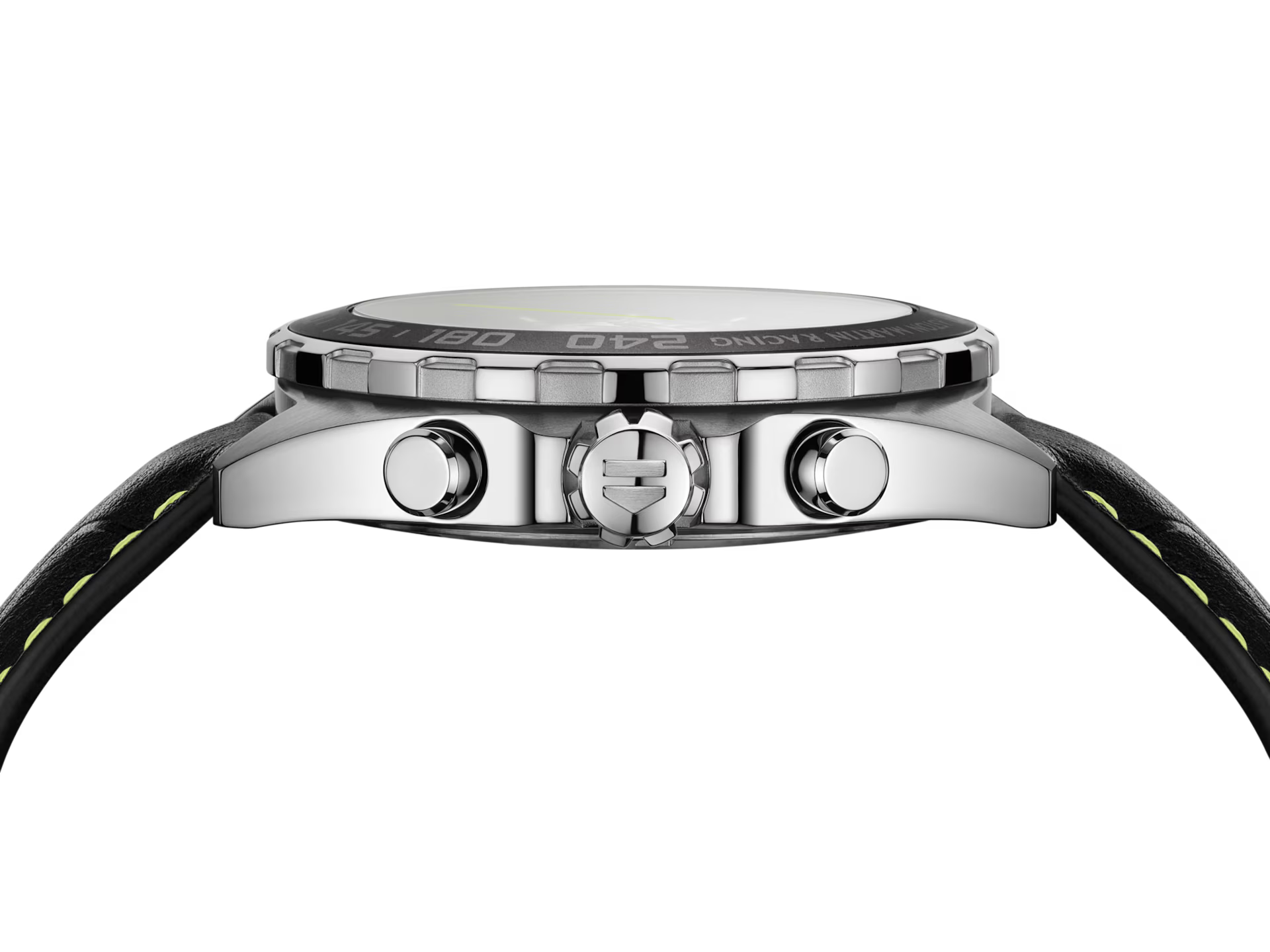 The TAG Heuer Formula 1 CAZ101P.FC8245 is a sporty and elegant men’s chronograph designed for precision and style. Featuring a 43mm stainless steel case with a black dial and Arabic numeral markers, this watch combines readability with a sophisticated aesthetic. The calfskin strap adds comfort and a refined look, while the Swiss quartz movement ensures accurate and reliable timekeeping. Water-resistant up to 200 meters, it is ideal for active lifestyles and everyday wear, backed by TAG Heuer’s 5-year guarantee.