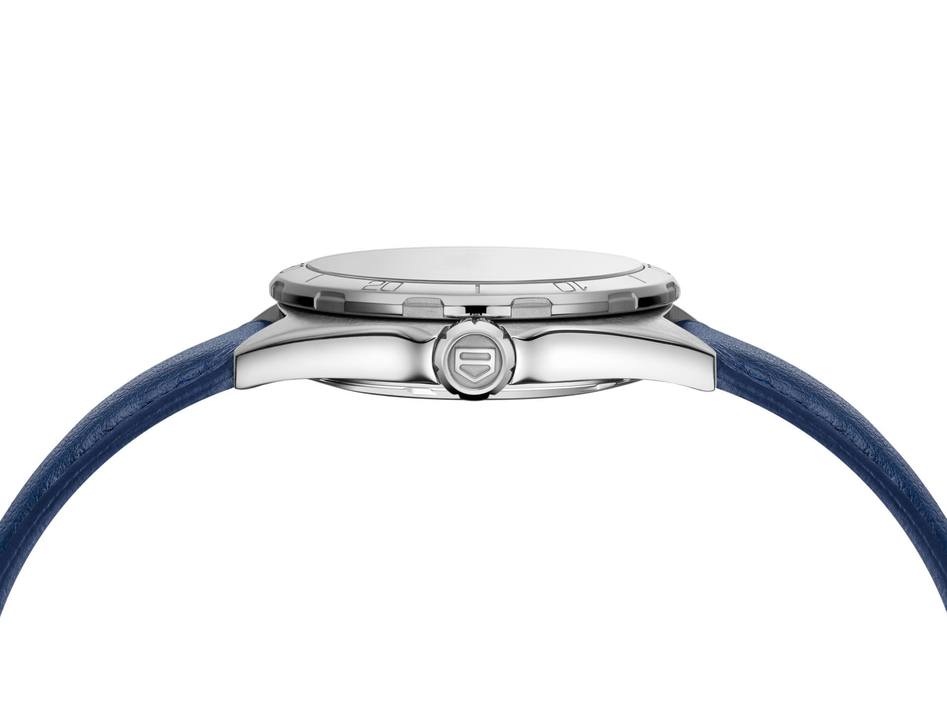 The TAG Heuer Formula 1 WBJ1412.FC8233 is a chic and sporty ladies’ watch designed for everyday sophistication. Housed in a 32mm stainless steel case, it features a vibrant blue dial with silver-tone hands, index markers, and an Arabic numeral at 12 o’clock. The smooth blue calfskin leather strap adds a refined yet casual touch, making it versatile for both office wear and weekends. A scratch-resistant sapphire crystal and Swiss quartz movement ensure durability and precision, while the 100-metre water resistance makes it ready for any adventure.