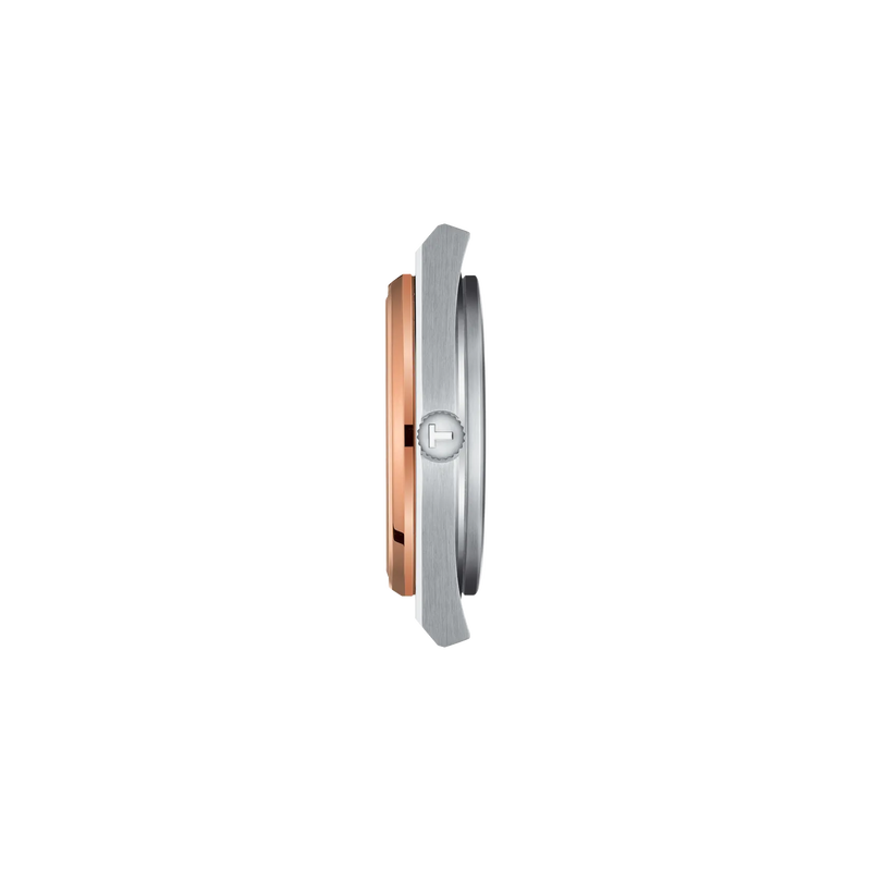 The Tissot PRX Powermatic 80 combines iconic 1978 PRX design with modern Swiss precision. Featuring a 40 mm rose gold PVD-coated 316L stainless steel case and a silver dial with Super-LumiNova® hands, it offers a perfect balance of style and function. The see-through caseback reveals the Swiss automatic movement with Nivachron balance spring and an impressive 80-hour power reserve. Scratch-resistant sapphire crystal with antireflective coating and a water resistance of 10 bar (100 m) make it as durable as it is elegant. The grey stainless steel bracelet with butterfly clasp and interchangeable quick-release system adds versatility for everyday wear.