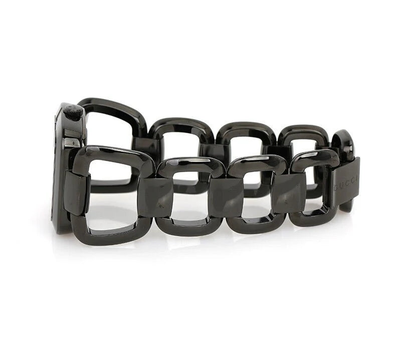 The Gucci YA125403 combines bold design with Swiss precision for a striking women’s timepiece. Featuring a 32 x 30 mm black PVD-coated stainless steel case and matching bracelet, this watch showcases a sleek black dial with a minimalist design. Powered by a reliable Swiss quartz movement with 2–3 years of battery life, it offers accurate timekeeping. Finished with a scratch-resistant anti-reflective sapphire crystal and water resistance up to 30 meters, this watch delivers durability, elegance, and modern style.