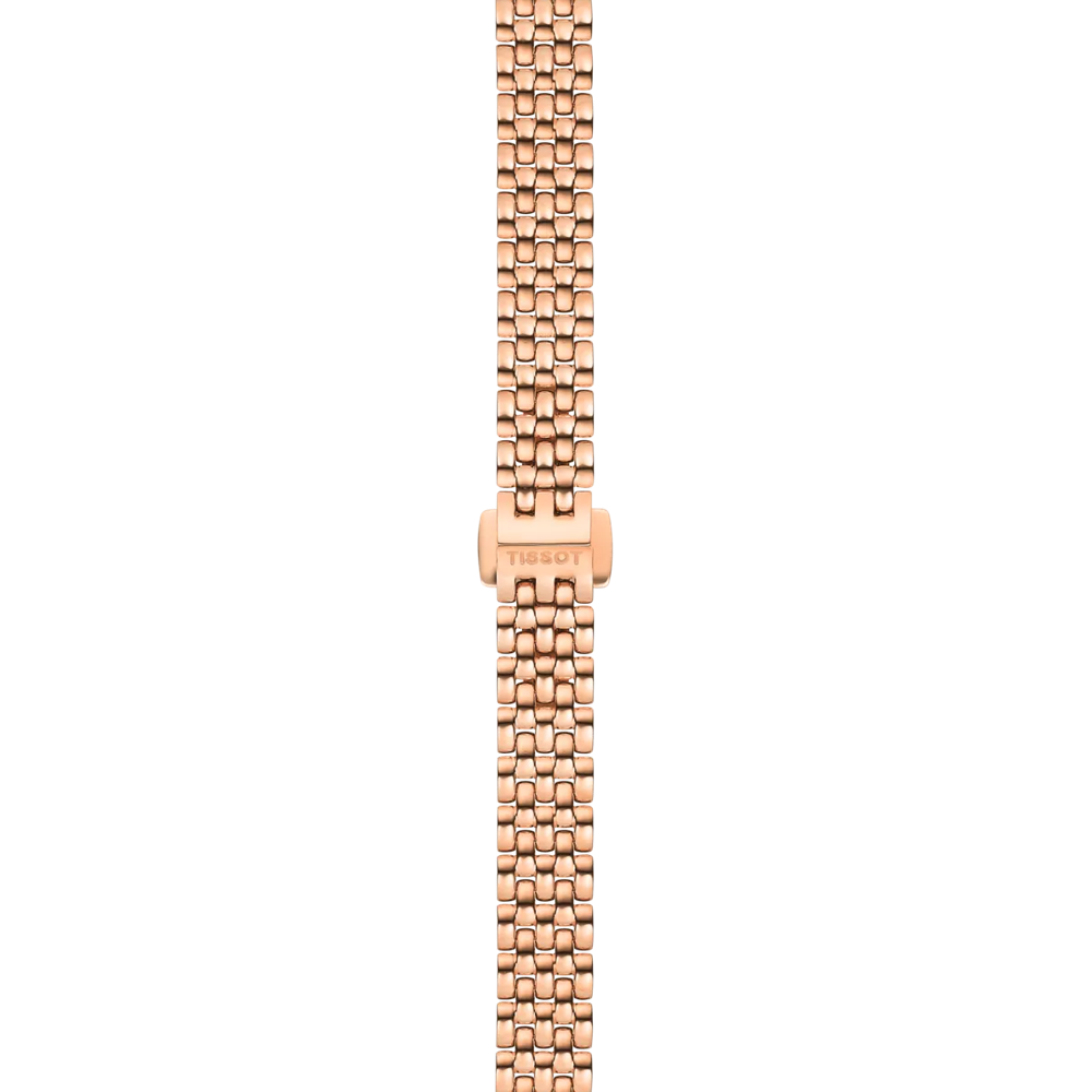 The Tissot Lovely (Model T058.009.33.111.00) is a delicate and elegant mini watch designed for women. Its 19.5 mm 316L stainless steel case with rose gold PVD coating houses a unique white mother-of-pearl dial, giving each watch its own natural charm. The Swiss quartz movement ensures accurate and reliable timekeeping, while the scratch-resistant sapphire crystal protects the dial. A rose gold PVD stainless steel bracelet with butterfly clasp completes this refined and jewellery-like timepiece.