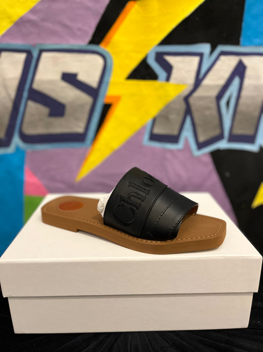 Chloe Black Leather Western Slides